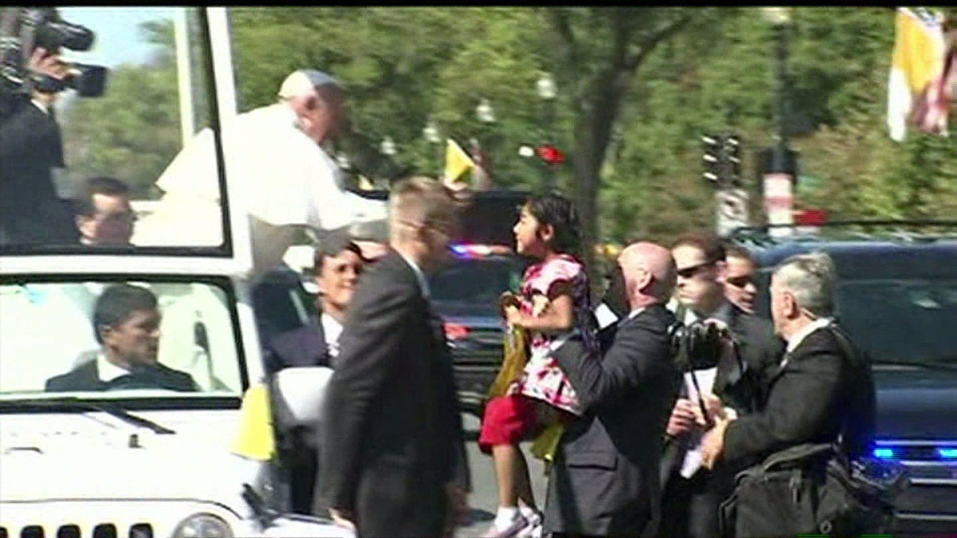 An example: I was struck by something that happened a couple of days ago. You might have seen it in the news. The Pope was in a caravan, standing in his “Popemobile,” waving to the crowds, when a little girl, 5 year old Sophie Cruz, snuck through the barricades and tried to make her way to him. Of course, the Pope’s large, burly security detail intercepted her and tried to return her to the proper side of the barricade. But she kept pointing at the man Catholics call the Holy Father, and shouting “Papa, Papa…” Pope Francis noticed and gestured for her to be allowed through. She ran up to the motorcade, the Pope bent down, picked her up and she gave him a giant hug.