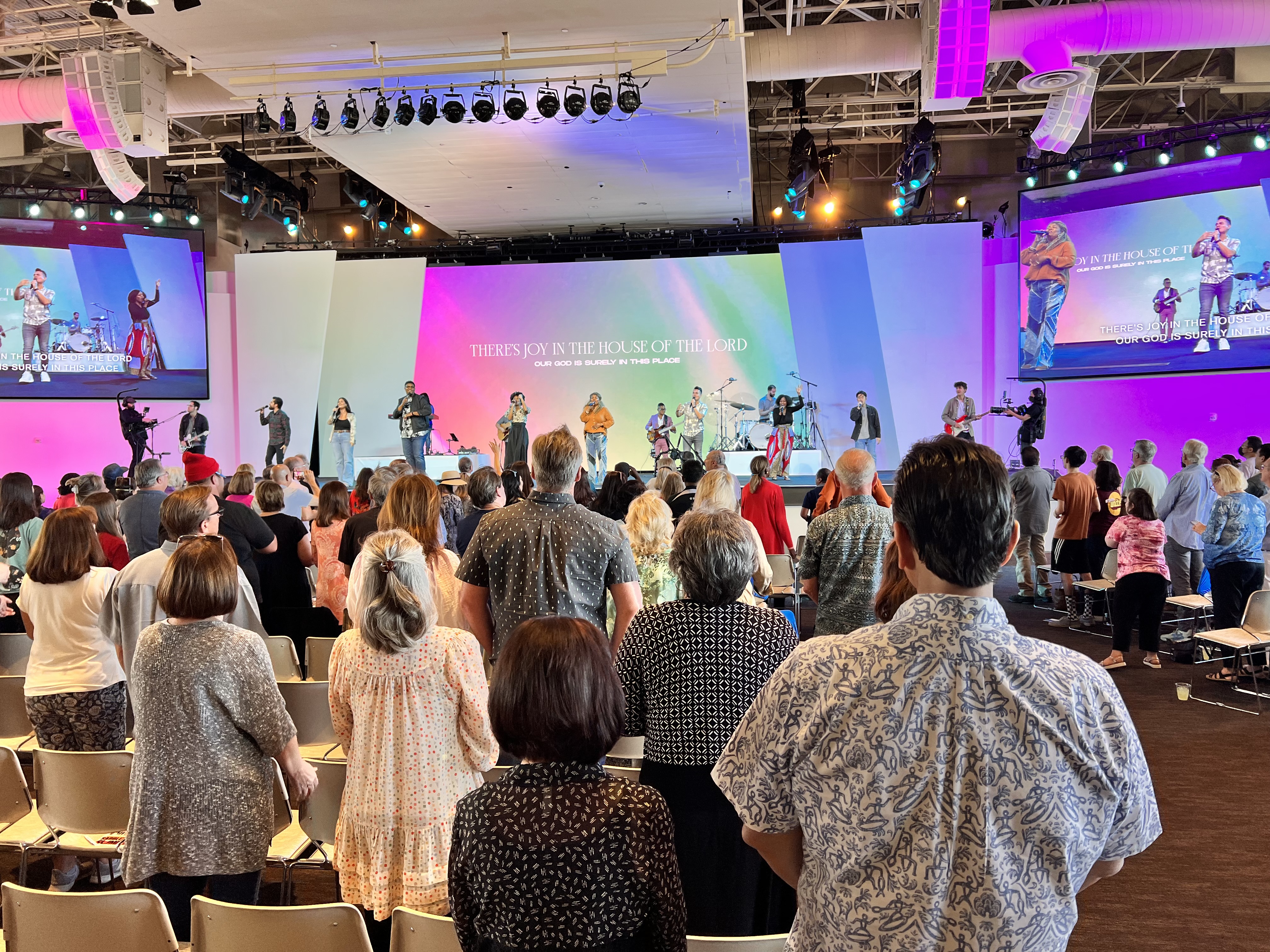 This worship center is a mammoth building that will seat over 3,500 worshippers. The walls on both sides of the auditorium are glass, and open up like giant garage doors. This allowed the breeze to blow through the worship space, giving the feeling of worshipping “outside” while you were still in the sanctuary. The space has concert quality sound and lighting, and the worship band, with only 5 (really good) instrumentalists, had an additional 8 vocalists. It was obvious that the music group was an intentionally multi-cultural group. I appreciated that intention.